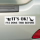 IT'S OK! - I'VE DONE THIS BEFORE. Skydiving bumper sticker