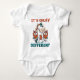 I love this onesie, it's adorable! The material is amazing so soft and the color is a perfect sky blue. When my daughter-in asked me to help with her Baby Shower, I was thrilled. It was co-ed & the theme was Cookie Monster. I had no idea that the whole world was after that big blue Monster. Thank goodness for Zazzle, I got most of the party supplies here. Then I found this onesie! They made my customization so easy. The colors are awesome. I wrote the word "Loved" across the bottom of the Cookie Monster in red letters when I was putting it together. I saw the preview & liked it. But to see it in person, OH, it was fantastic, they do exceptional work! I am so glad that I found this onesie/bodysuit. The production time and shipping were exactly what I was told, which made it easy to plan the party. Packaging was nice as well. If you are looking at this product, look no further, I highly recommend it! I'm certain that I'll be back to "design" whatever my new Grandson "needs.". The printing on the onesie/bodysuit is crisp, and clean. With perfect colors that blend well with the blue background of the basic material. We are so happy with how it came out.