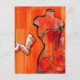 Bold orange suits a sassy dress form wearing a bustier and long Marilyn Monroe style gloves in this painting by Laura Tetrault.