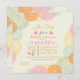 A beautiful invitation featuring corner clusters of fantasy flowers in pink, orange green and blue over a thin stripe background. Perfect for any feminine celebration or occasion.