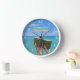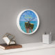 This clock is decorated with a photo of two half pineapples full of BahamaMama being held up against a blue Bahamian sea and sky. The words read: It's time for a BahamaMama. You can personalize the clock with your own words. The clock has white numbers.