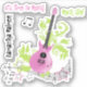 It's time to rock! pink electric guitar and abstract lime green swirls and leaves, music notes on the pentagram with the treble clef and stars. Also there are the phrases "It's time to rock”, "Rock girl" and your name in a cool font with skulls.