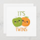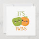 Cute Orange and Apple characters with text reading: "It's Twins".
