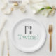Celebrate your upcoming arrival with these festive "It's Twins!" baby shower party paper plates. This design features the text in colors of black and jade green.