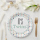 Celebrate your upcoming arrival with these festive "It's Twins!" baby shower party paper plates. This design features the text in colors of black and jade green with a modern geometric pattern in green, coral, and black.