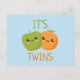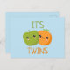 Cute Orange and Apple characters with text reading: "It's Twins".