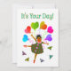 Charming African American girl, surrounded by heart shaped balloons and butterflies proclaims that It's Your Day on this fun birthday card. Edit the text with your personal message and it becomes an all occasion card!