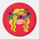 A bright cheery magnet of a girl wearing a floral headpiece like those worn at Ivana Kupala festivities. The poppy is represented in the headpiece or wreath and is also represented by the red background. See my complete line of magnets and decorate your fridge with colour.