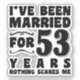 After a decade of marriage, there's no challenge too daunting. Celebrate your lasting love and unwavering commitment with our "I've Been Married For 53 Years Nothing Scares Me" design. It's a bold declaration of enduring love and the strength of a partnership that can conquer anything. Take it proudly and show the world that with a decade of marriage under your belt, you're fearless and ready to take on whatever life throws your way.