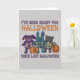 Send some spooky cute greetings their way with this fun Halloween card. It features cute illustrations of patchwork stuffed animals with skeletons showing on their bellies and the slogan I'VE BEEN READY FOR HALLOWEEN SINCE LAST HALLOWEEN on the front. The message on the inside can be customized with your own greeting.