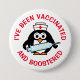 I've been vaccinated and boostered vaccination buttons. Custom coronavirus vaccination text with cute animal bird holding a big syringe needle. Pandemic vaccine encouragement. Penguin medical nurse cartoon template. Also available for on other products. Available in small, medium and big sizes.