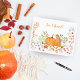 Watercolor of pumpkins with an owl set in an autumn background. A lovely way to announce a new move! Just easily add your information to the postcard and you are ready to go.