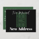 Use this minimalist postcard to tell your loved ones that you've moved. The design combines modern script and bold typography on a solid black background on the front, while the back is solid hunter green. Convert our message to your own, update the address and your name and you've got what you need to announce your move.