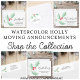 It is decorated with watercolor holly and berries in shades of red and green.