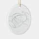Lightweight, smooth, pure white ornament with nice sheen. Perfect size to be seen from across the room ... and to attract closer inspection! Price was great for ordering enough for the whole family! Clear, bold black design just as requested. Matches the order exactly. Just so nice!
