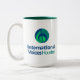 15 oz two-tone mug with IVH logo and mission. Hunter green interior.