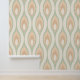 Ivory Beige Olive Sage Green Tan Ogee Wave Pattern Wallpaper