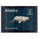 Another in the series of postage stamps for the notional independent nation of Alaska. Features a digital rendering of an beluga whale carved from mammoth ivory. The carving of ivory is a traditional craft of Alaska Natives. White is the predominant color in this image on a dark blue-green background. The beluga or white whale, Delphinapterus leucas, is a small toothed whale found in both the Arctic and sub-Arctic. The English name comes from the Russian белуха (belukha), which derives from the word белый (belyy), meaning "white". It is sometimes referred to by scientists as the belukha whale to avoid confusion with the beluga sturgeon. The beluga is also colloquially known as the sea canary due of its high-pitched squeaks, squeals, clucks and whistles which can even be heard above the water. A Japanese researcher says he taught a beluga to "talk" by using these sounds to identify three different objects, offering hope that humans may one day be able to communicate effectively with sea mammals. Male belugas are larger than females. Length can range from 8.5 to 22 ft, averaging 13 ft in males and 12 ft in females. Males weigh from 2,400 to 3,500 lbs, while females weigh between 1,500 and 2,600 lbs. The beluga can live more than 50 years. Adult belugas are rarely mistaken for other species, as they are completely white or whitish-gray in color. Calves, however, are usually gray. The beluga's head is unlike that of any other cetacean. Like most toothed whales it has a melon—an oily, fatty tissue lump found at the center of the forehead. The beluga's melon is extremely bulbous and even malleable. The beluga is able to change the shape of its head by blowing air around its sinuses. Unlike many dolphins and whales, the vertebrae in the neck are not fused together, giving it a flexible, well-defined neck and allowing the animal to turn its head laterally. The rostrum has about 8 to 10 teeth on each side of the jaw and a total of 34 to 40 teeth. Unlike most whales, it is capable of swimming backwards. The beluga molts seasonally. Belugas have a dorsal ridge, rather than a dorsal fin. The absence of the dorsal fin is reflected in the genus name of the species—apterus the Greek word for "wingless." The evolutionary preference for a dorsal ridge rather than a fin is believed to be an adaptation to under-ice conditions, or possibly as a way of preserving heat. As in other cetaceans, the thyroid gland is relatively large compared to terrestrial mammals (proportionally three times as large as a horse's thyroid) and may help to sustain higher metabolism during the summer estuarine occupations. Its body is round, particularly when well-fed, and tapers less smoothly to the head than the tail. The sudden tapering to the base of its neck gives it the appearance of shoulders, unique among cetaceans. The tail fin grows and becomes increasingly and ornately curved as the animal ages. The flippers are broad and short—making them almost square-shaped. The beluga inhabits a discontinuous circumpolar distribution in Arctic and sub-Arctic waters ranging from 50°N to 80°N, particularly along the coasts of Alaska, Canada, Greenland, and Russia. The southernmost extent of their range includes isolated populations in the St. Lawrence River estuary and the Saguenay fjord, around the village of Tadoussac, Quebec, in the Atlantic and the Amur River delta, the Shantar Islands and the waters surrounding Sakhalin Island in the Sea of Okhotsk. In the spring, the beluga moves to its summer grounds: bays, estuaries and other shallow inlets. These summer sites are discontinuous. A mother usually returns to the same site year after year. As its summer homes clog with ice during autumn, the beluga moves away for winter. Most travel in the direction of the advancing icepack and stay close to its edge for the winter months. Others stay under the icepack—surviving by finding ice leads and polynyas (patches of open water in the ice) in which they can surface to breathe. Beluga may also find air pockets trapped under the ice. The beluga's ability to find the thin slivers of open water within a dense ice pack that may cover more than 96% of the surface mystifies scientists. Its echo-location capabilities are highly adapted to the sub-ice sea's peculiar acoustics and it has been suggested that belugas can sense open water through echo-location. In 1849, while constructing the first railroad between Rutland and Burlington in Vermont, workers unearthed the bones of a mysterious animal in the town of Charlotte. Buried nearly 10 feet (3.0 m) below the surface in a thick blue clay, these bones were unlike those of any animal previously discovered in Vermont. Experts identified the bones as those of a beluga. Because Charlotte is over 150 miles (240 km) from the nearest ocean, early naturalists were at a loss to explain the bones of a marine mammal buried beneath the fields of rural Vermont. Today, the Charlotte whale aids in the study of the geology and the history of the Champlain Basin,and this fossil is now the official Vermont State Fossil (making Vermont the only state whose official fossil is that of a still extant animal). Belugas are highly sociable. Groups of males may number in the hundreds, while mothers with calves generally mix in slightly smaller groups. When pods aggregate in estuaries, they may number in the thousands. This can represent a significant proportion of the entire population and is when they are most vulnerable to hunting. Pods tend to be unstable, meaning that they tend to move from pod to pod. Radio tracking has shown that belugas can start out in a pod and within a few days be hundreds of miles away from that pod. Mothers and calves form the beluga's closest social relationship. Calves often return to the same estuary as their mother in the summer, meeting her sometimes even after becoming fully mature. Belugas can be playful—they may spit at humans or other whales. It is not unusual for 