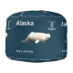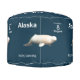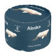 On the top a digital rendering of a beluga whale carved from mammoth ivory. Add your own text. On the sides the same image is incorporated into an 8-Nugget postage stamp of a mythical independent Alaska; one of a series of such stamps. The carving of ivory is a traditional craft of Alaska Natives. White is the predominant color in this image on a dark blue-green background. The beluga or white whale, Delphinapterus leucas, is a small toothed whale found in both the Arctic and sub-Arctic. The English name comes from the Russian белуха (belukha), which derives from the word белый (belyy), meaning "white". It is sometimes referred to by scientists as the belukha whale to avoid confusion with the beluga sturgeon. The beluga is also colloquially known as the sea canary due of its high-pitched squeaks, squeals, clucks and whistles which can even be heard above the water. A Japanese researcher says he taught a beluga to "talk" by using these sounds to identify three different objects, offering hope that humans may one day be able to communicate effectively with sea mammals. Male belugas are larger than females. Length can range from 8.5 to 22 ft, averaging 13 ft in males and 12 ft in females. Males weigh from 2,400 to 3,500 lbs, while females weigh between 1,500 and 2,600 lbs. The beluga can live more than 50 years. Adult belugas are rarely mistaken for other species, as they are completely white or whitish-gray in color. Calves, however, are usually gray. The beluga's head is unlike that of any other cetacean. Like most toothed whales it has a melon—an oily, fatty tissue lump found at the center of the forehead. The beluga's melon is extremely bulbous and even malleable. The beluga is able to change the shape of its head by blowing air around its sinuses. Unlike many dolphins and whales, the vertebrae in the neck are not fused together, giving it a flexible, well-defined neck and allowing the animal to turn its head laterally. The rostrum has about 8 to 10 teeth on each side of the jaw and a total of 34 to 40 teeth. Unlike most whales, it is capable of swimming backwards. The beluga molts seasonally. Belugas have a dorsal ridge, rather than a dorsal fin. The absence of the dorsal fin is reflected in the genus name of the species—apterus the Greek word for "wingless." The evolutionary preference for a dorsal ridge rather than a fin is believed to be an adaptation to under-ice conditions, or possibly as a way of preserving heat. As in other cetaceans, the thyroid gland is relatively large compared to terrestrial mammals (proportionally three times as large as a horse's thyroid) and may help to sustain higher metabolism during the summer estuarine occupations. Its body is round, particularly when well-fed, and tapers less smoothly to the head than the tail. The sudden tapering to the base of its neck gives it the appearance of shoulders, unique among cetaceans. The tail fin grows and becomes increasingly and ornately curved as the animal ages. The flippers are broad and short—making them almost square-shaped. The beluga inhabits a discontinuous circumpolar distribution in Arctic and sub-Arctic waters ranging from 50°N to 80°N, particularly along the coasts of Alaska, Canada, Greenland, and Russia. The southernmost extent of their range includes isolated populations in the St. Lawrence River estuary and the Saguenay fjord, around the village of Tadoussac, Quebec, in the Atlantic and the Amur River delta, the Shantar Islands and the waters surrounding Sakhalin Island in the Sea of Okhotsk. In the spring, the beluga moves to its summer grounds: bays, estuaries and other shallow inlets. These summer sites are discontinuous. A mother usually returns to the same site year after year. As its summer homes clog with ice during autumn, the beluga moves away for winter. Most travel in the direction of the advancing icepack and stay close to its edge for the winter months. Others stay under the icepack—surviving by finding ice leads and polynyas (patches of open water in the ice) in which they can surface to breathe. Beluga may also find air pockets trapped under the ice. The beluga's ability to find the thin slivers of open water within a dense ice pack that may cover more than 96% of the surface mystifies scientists. Its echo-location capabilities are highly adapted to the sub-ice sea's peculiar acoustics and it has been suggested that belugas can sense open water through echo-location. In 1849, while constructing the first railroad between Rutland and Burlington in Vermont, workers unearthed the bones of a mysterious animal in the town of Charlotte. Buried nearly 10 feet (3.0 m) below the surface in a thick blue clay, these bones were unlike those of any animal previously discovered in Vermont. Experts identified the bones as those of a beluga. Because Charlotte is over 150 miles (240 km) from the nearest ocean, early naturalists were at a loss to explain the bones of a marine mammal buried beneath the fields of rural Vermont. Today, the Charlotte whale aids in the study of the geology and the history of the Champlain Basin,and this fossil is now the official Vermont State Fossil (making Vermont the only state whose official fossil is that of a still extant animal). Belugas are highly sociable. Groups of males may number in the hundreds, while mothers with calves generally mix in slightly smaller groups. When pods aggregate in estuaries, they may number in the thousands. This can represent a significant proportion of the entire population and is when they are most vulnerable to hunting. Pods tend to be unstable, meaning that they tend to move from pod to pod. Radio tracking has shown that belugas can start out in a pod and within a few days be hundreds of miles away from that pod. Mothers and calves form the beluga's closest social relationship. Calves often return to the same estuary as their mother in the summer, meeting her sometimes even after becoming fully mature. Belugas can be
