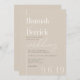 Yes, you can print on the back of your invitation for free! Most designs already have a corresponding design on the back that can be personalized using the Design Tool and going to Layers. This is a great way to communicate more information or further personalize your Ivory Biege Simple Modern Typography Wedding Invitation. The option is really up to you.