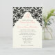 Ivory, Black, Coral Damask Monogrammed Invite