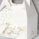 But the thoughtful design doesn't stop there! The back of each box proudly displays the same dreamy, soft backdrop of delicate ivory blooms that defines your beautiful shower theme, creating an atmosphere of pure romance and sophistication along with gleaming "Thank You" in elegant gold script, a heartfelt message that speaks volumes. For an even more personal touch, you have the wonderful option to add a message like "for celebrating with us!" in a small, complementary black script, making each favor box uniquely yours.