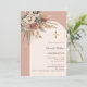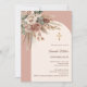 Set the tone for your special day with this elegant confirmation invitation. Featuring a terracotta colored background, with an ivory blush colored arch frame it’s beautifully adorned with muted, earthy roses, eucalyptus greenery, and pampas grass for a natural feel. Personalize it with your name and the details to create a unique and memorable invitation that reflects your style.