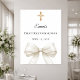 A large ivory colored bow with pearls and a golden cross as decoration. Personalize and add her name.