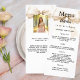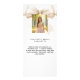 Birthday party menu card. Personalize and add a name, age, date and the menu. A white background and a large ivory colored bow.