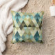 Ivory Brown Teal Blue Diamond Squares Pattern Throw Pillow