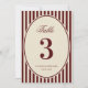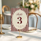 Ivory Burgundy Stripes Retro Wedding Table Number