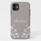 Sweet and dainty Butterfly Floral Case-Mate Barely There iPhone 5 Case with a muted dusty gray background and ivory butterflies and floral vine embellishments. This elegant floral iPhone case will protect your phone with girly flair! Easy to customize, simply add the personalized text of your choosing in the text fields provided. Click on the "Customize It" button to find additional personalization options.