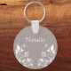 Sweet and dainty Butterfly Floral Keychain with a muted dusty gray background and ivory butterflies and floral vine embellishments. This elegant floral key fob is a lovely choice for keeping your keys handy with girly flair. Easy to customize, simply add the personalized text of your choosing in the text fields provided. Click on the "Customize It" button to find additional personalization options.