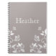 Sweet and dainty Butterfly Floral Notebook with a muted dusty gray background and ivory butterflies and floral vine embellishments. This elegant floral notebook is full of girly flair and is perfect for jotting down notes or whatever else your imagination holds! Easy to customize, simply add the personalized text of your choosing in the text fields provided. Click on the "Customize It" button to find additional personalization options.