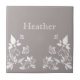 Sweet and dainty Butterfly Floral Tile with a muted dusty gray background and ivory butterflies and floral vine embellishments. This elegant floral tile would complement any decor! Easy to customize, simply add the personalized text of your choosing in the text fields provided. Click on the "Customize It" button to find additional personalization options.