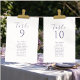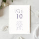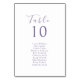 Chic and elegant wedding seating chart and table number combo features a contemporary set of purple fonts, against a soft ivory background. The design is repeated at the back. This seating card accommodates a 10+ guest names. The design embues modern elegance in a minimalist style, matching other items in the full wedding suite.