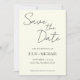 Simple style wedding save-the-date invitations that feature black, stylized script on a trendy, ivory color background. Edit and replace names, date, and location with your own. Select your invitation size and paper style. Designed to coordinate with our Ivory Simple Style Wedding collection.
