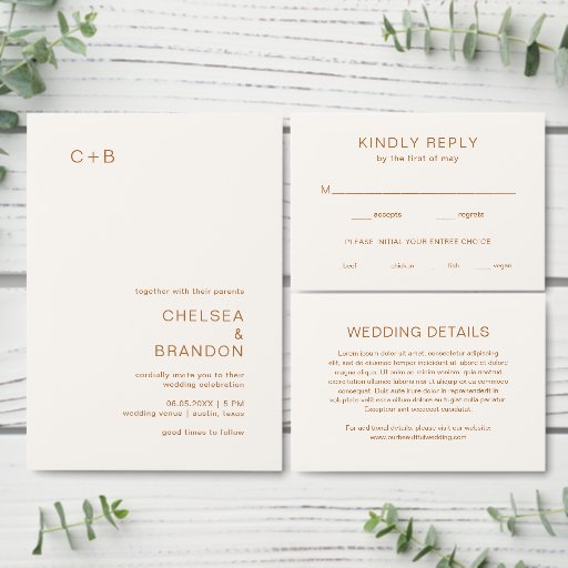Ivory Copper Monogram Modern Wedding Invitation