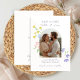 This chic and stylish wedding save the date announcement card features a lovely watercolor floral illustration, boho arch couple photo and contemporary set of lavender fonts, against a soft ivory background. Optional couple initials or additional text feature at the back. This simple design embues modern minimalism with a fresh romantic feel. Variations of this design is available in the full collection.