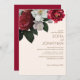 This watercolor floral invitation features rose,peonies flowers in rustic maroon,magenta,ivory and red color with botanical leaves pattern and a minimal text..Personalize the invitation with the recipient's name. Perfect formal classic floral wedding collection