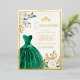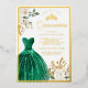 Ivory Floral Emerald Green Gown Quinceanera Gold Foil Invitation
