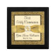 This personalized ivory and gold First Holy Communion keepsake jewelry box has a PRINTED ON gold ribbon and bow with a round gold button medallion on top that is surrounded by round crystal jewels with a simulated gold tone Cross in the center. The area above the ribbon says "First Holy Communion" in black lettering and the area below the ribbon is cream with the name, and date of the 1st Communion in black. It would be a perfect keepsake to store all the small gifts and mementos from that special occasion. If you have any requests for changes or need help customizing this with your text, please email niteowlstudio@gmail.com.