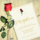 Timeless elegance: Traditional minimalist red roses wedding with gold script typography and ivory background.