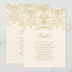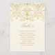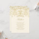 Elegant gold calligraphy and ornate vintage scrollwork on a warm ivory background create a sophisticated seating chart table number card. Each card displays the table number along with a list of guest names assigned to that table, helping guests easily find their seats. The table number, guest names, and all text are easy to personalize. Each table must be individually personalized and added to the cart one at a time.
