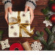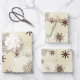 This elegant wrapping paper set features three flat sheets of ivory wrapping paper with golden flowers and stars.