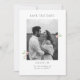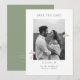 Whimsical and chic. This lovely white & sage green wedding save the date card features a lovely blush pink watercolor floral accents and couple photo, alongside a contemporary set of fonts. Included at the back is optional text.