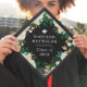 Stand out on your special day with this sleek greenery-themed graduation cap design. The gold accents and botanical details add a touch of sophistication to your celebratory look.