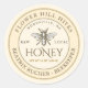 Ivory Label with Vintage French Bee features a double white circling your Apiary Name and Location. Apiary name is displayed in curved text across the top and the beekeeper's name, city and town are written in curved text on the lower half of the label. There is a delicate double lined border near the outer perimeter of the label. The word "Honey" is written in a decorative font.