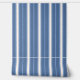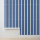 This design features an ivory and light blue stripe pattern with a cozy farmhouse feel set against a medium to dark blue backdrop, offering a warm and welcoming ambiance. It exudes a timeless elegance and style that captures the essence of modern, minimalist Scandinavian hygge design. Ideal for artistic interior designers, decor lovers, and those with a keen fashion sense, it marries the charm of vintage aesthetics with sleek simplicity. This chic and elegant pattern adorns a variety of contemporary home decor items, perfectly suited for enhancing spaces like a master or guest bedroom, an earth-toned nursery, a country cottage style office, a living room, or a family entertainment area.