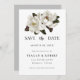 Send a save the date card with a corsage of ivory and grey magnolia blossoms. Click the custom button to change the date, names, address and future instructions.